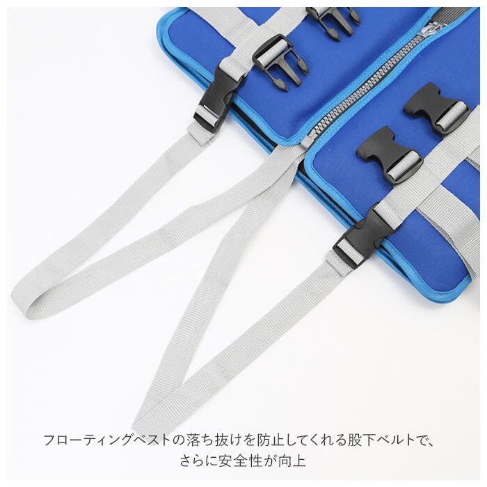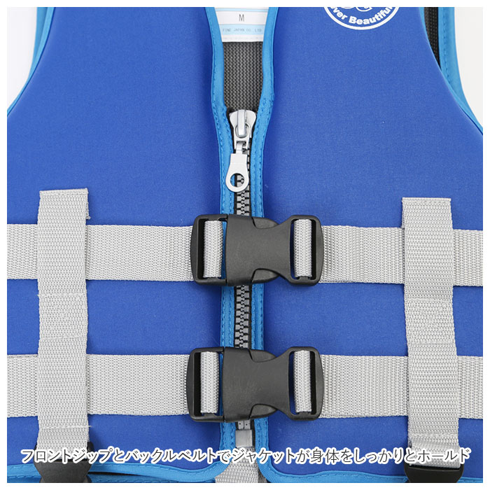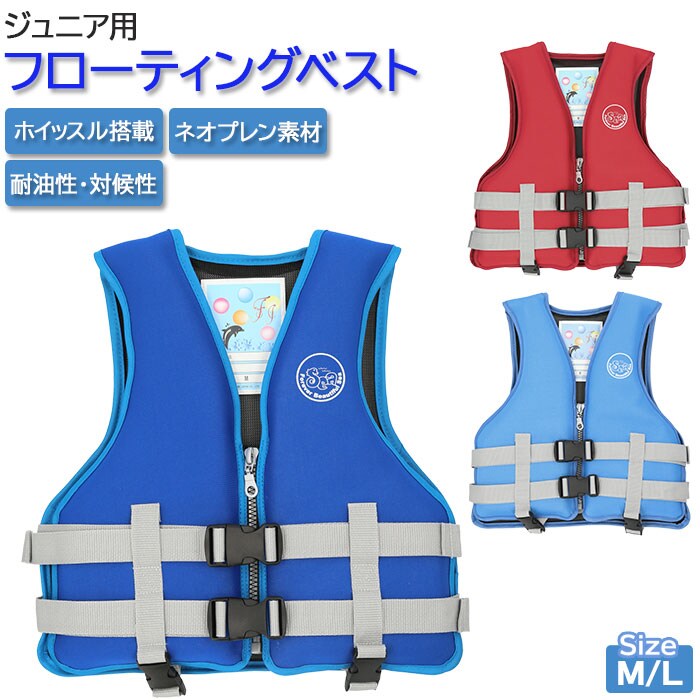 | 商品説明 | 海辺や川岸など、水辺のアクティビティーが安全に楽しめる!ジュニアフローティングべストの登場!左右の前合わせ、背面の生地には浮力材が封入されているので、渓流遊びや水辺のスポーツで、万が一水面に落下しても安全に浮き上がることのできるフローティングベスト。ベスト表面にはウェットスーツ生地にも使用されるネオプレン素材を採用し、耐油性・対候性に優れ、軽く乾きやすいのが特徴。裏地は水切れが良く、乾きやすいメッシュ加工生地で仕上げているから、快適な着心地。周囲に緊急SOSを知らせることができる、もしもの時に安心な安全用のホイッスルを搭載。ベストの内側にある専用ポケットに収納可能。フロントジップとバックルベルトでジャケットが身体をしっかりとホールド。両サイドのバックルベルトを調節する事でフィット感抜群。もしもの時に身体ごと引きあげられるように背中に持ち手状のハンドルが付いているのも注目ポイント!フローティングベストの落ち抜けを防止してくれる股下ベルトで、さらに安全性が向上!(※股下ベルトを使用しないときは、ベスト内側背面の小ポケットに収納可能。)視認性の高い鮮やかなカラーリングに、タツノオトシゴをモチーフにした「Forever Beatiful Sea」のロゴがデザインのワンポイント。 |