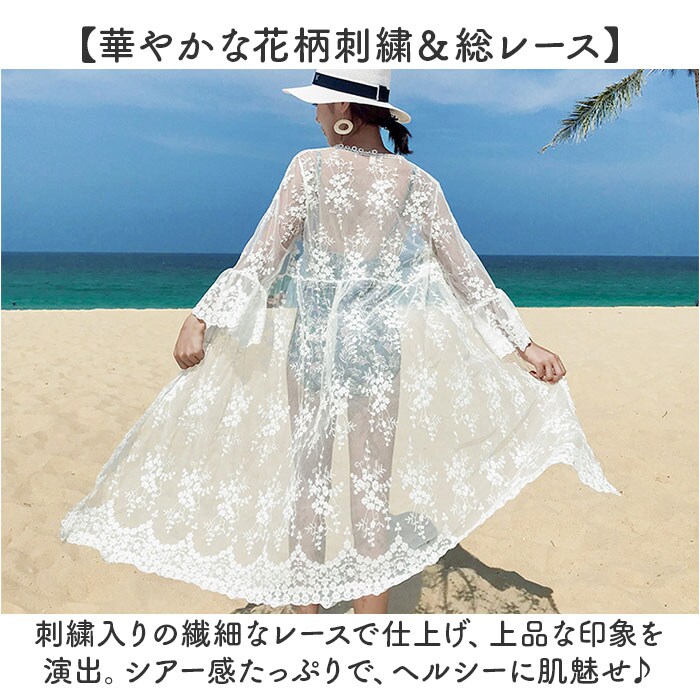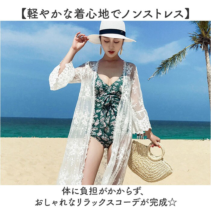 | 商品説明 | 【羽織るだけでおしゃれ度アップ】デイリーにもバケーションにも♪夏にぴったりな「ロングカーディガン」が新登場。【華やかな花柄刺繍&総レース】刺繍入りの繊細なレースで仕上げ、上品な印象を演出。シアー感たっぷりで、ヘルシーに肌魅せ♪【ふんわり広がるアンブレラスリーブ】女性らしさがグッと引き立つ♪袖口部分が大きく広がり、傘を開いたような袖口デザイン。【気になる部分も優しくカバー】二の腕やヒップなども程よく隠せる◎手首が見えるくらいの袖&膝下のロング丈。【いつでもどこでも着脱スムーズ】ボタンなどがなく、着替えに手間取らないのが嬉しい!【軽やかな着心地でノンストレス】体に負担がかからず、おしゃれなリラックスコーデが完成☆【水着にONしてリゾートシーンで】涼しげなホワイトカラーが、夏のビーチで映える♪水着の上にプラスしてもキュート。 |