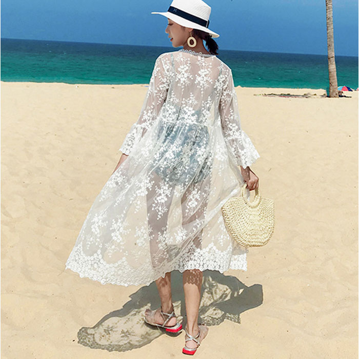レディース カーディガン ロング レース【ホワイト】