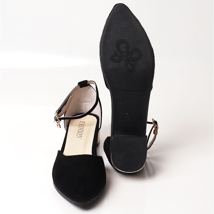 ローヒール ストラップ パンプス レディース【ブラック】【23cm】