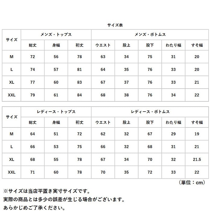| サイズ | [メンズ・レディース] ・Mサイズ ・Lサイズ ・XLサイズ ・XXLサイズ ※サイズについて詳細は、商品画像の中にあるサイズ表をご覧くださいませ。 |
