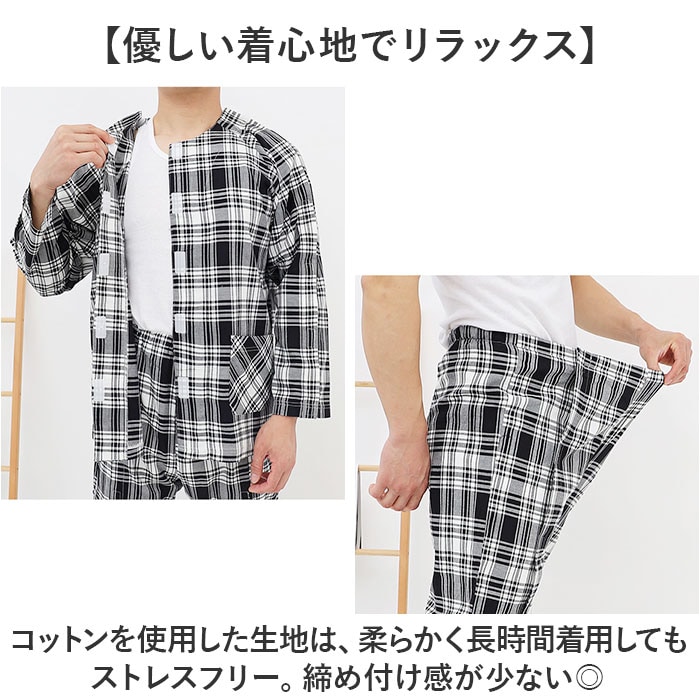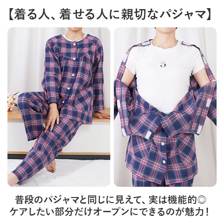 | 商品説明 | 【介護や入院生活をサポート】着たままケアができる、優れモノ!「介護パジャマ セットアップ」が登場。【着る人、着せる人に親切なパジャマ】普段のパジャマと同じに見えて、実は機能的◎ケアしたい部分だけオープンにできるのが魅力!【寝姿勢のままでケアできる】両腕両足にファスナーを搭載。寝姿勢のまま、オープンクローズができるから介護にぴったり!【優しい着心地でリラックス】コットンを使用した生地は、柔らかく長時間着用してもストレスフリー。締め付け感が少ない◎【収納ポケットつきで便利☆】スマホや小物を収納できるポケットを搭載。入院生活でも活躍する便利さ。【ロングシーズン使える長袖タイプ】薄手の長袖タイプなので、春秋冬と長く使える。冷房の冷えが気になる夏にも◎【レディース、メンズ用をご用意】エイジレスで着用できる、定番デザインのラインナップ。幅広いサイズ展開が嬉しい! |