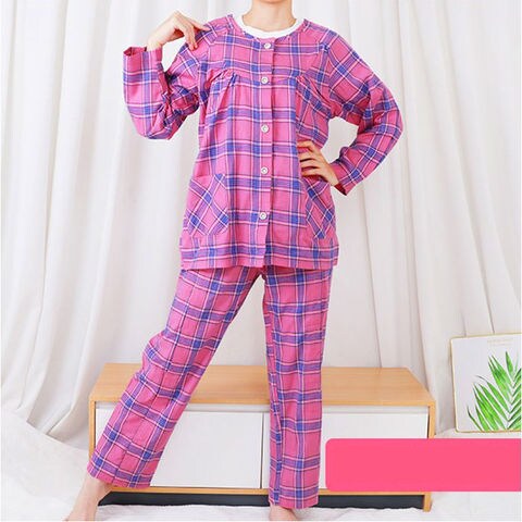 介護パジャマ セットアップ ファスナー コットン【レディース×パープル】【XXL】