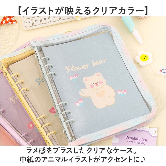 | 商品説明 | 【大切なトレカをおしゃれに保管】コレクター必見!いつも持ち歩きたくなる可愛さの「コレクトブック」が新登場。【イラストが映えるクリアカラー】ラメ感をプラスしたクリアなケース。中紙のアニマルイラストがアクセントに♪【見やすくぐるっと180度オープン】開口部は大きく開くラウンドファスナー式。取り出しやすく、中身がこぼれ落ちる心配不要。【A5サイズのリフィル対応バインダー】内側中央に6つ穴を配置したバインダー。お手持ちのA5サイズリフィルをカチッとひとまとめ。【さりげないアクセントをプラス】フラワー型の引き手は、ファイルと同じカラーで統一。細かい部分まで、ぬかりなくキュートに。【持ち運びも収納もラクラク】バッグに収納しやすく、自宅に置いておく時も場所を取らずスッキリ保管できるサイズ感。【お気に入りを選べるカラー】自分の好みや推しカラーをチョイス☆コレクションが増えたら、色違いで揃えるのもおすすめ。 |