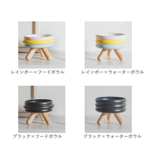 ペット フードボウル 水ボウル 食器台 陶器【レインボー×フードボウル】