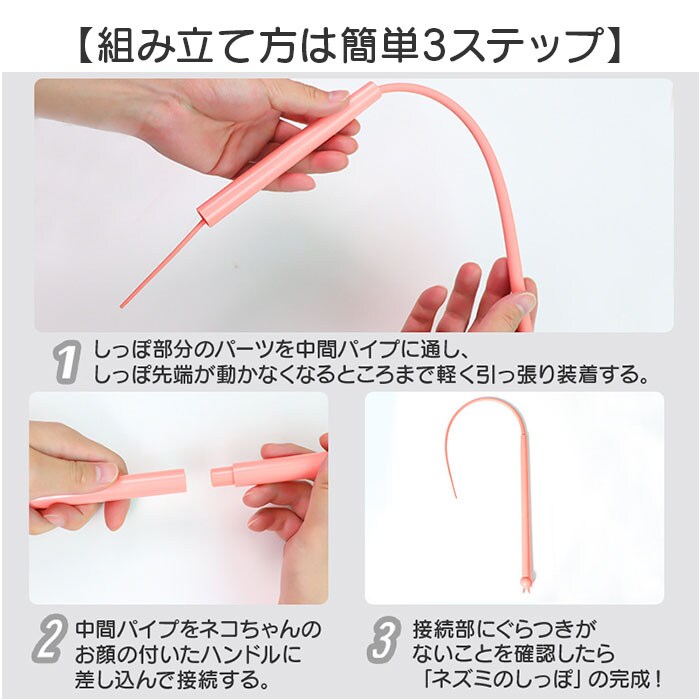 | 商品説明 | 【しなやかな動きにネコちゃん夢中】ネズミのしっぽの形をリアルに再現!「新感覚ネコじゃらし・ネズミのしっぽ」が新登場!【ニャンコを誘惑する柔らか素材】弾力のあるシリコン素材のしっぽが「にょろにょろ、するり」。魅力的な動きでニャンコを誘惑。【楽しく遊んでストレス解消!】ハンドルを握ってニャンコの頭上に垂らしたり、素早く動かせば、予測のつかない動きに大興奮!【ペットに優しいマテリアル】滑らかで柔軟なしっぽ部分には、愛猫がかじったり舐めても安全な食品グレードシリコンを採用。【ネコ好きさんに嬉しいデザイン】ハンドルの先端にネコちゃん発見!お耳がぴょこんと飛び出た、まぁるいキャットフェイス付き。【手軽に洗って、いつでも清潔】食器用洗剤を含ませたスポンジで洗浄することで汚れを簡単OFF!いつでも清潔に遊べる♪【組み立て方は簡単3ステップ】1. しっぽ部分のパーツを中間パイプに通し、しっぽ先端が動かなくなるところまで軽く引っ張り装着する。2.中間パイプをネコちゃんのお顔の付いたハンドルに差し込んで接続する。3.接続部にぐらつきがないことを確認したら「ネズミのしっぽ」の完成!【一緒に遊んで、充実ペットライフ】普段はお留守にしがちで、ネコちゃんと遊びながらスキンシップを図りたい飼い主さんにオススメ。 |