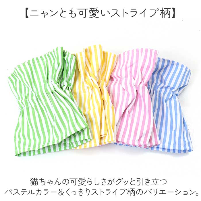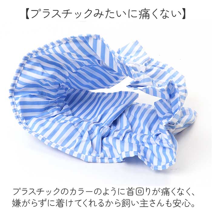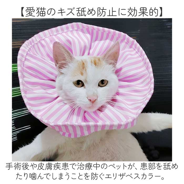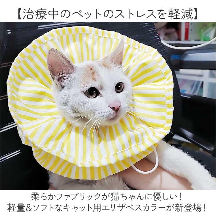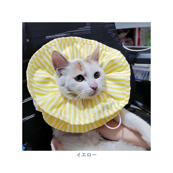 | 商品説明 | 【治療中のペットのストレスを軽減】柔らかファブリックが猫ちゃんに優しい!軽量&ソフトなキャット用エリザベスカラーが新登場!【愛猫のキズ舐め防止に効果的】手術後や皮膚疾患で治療中のペットが、患部を舐めたり噛んでしまうことを防ぐエリザベスカラー。【ソフトな生地感でニャンコご機嫌】サラリと肌触りのよい生地と柔らかゴムを使用し、バンダナみたいにお洒落で軽い着け心地。【プラスチックみたいに痛くない】プラスチックのカラーのように首回りが痛くなく、嫌がらずに着けてくれるから飼い主さんも安心。【ごはんが食べやすいデザイン】カラーの縁がフードボウルにぶつからないので、お水を飲んだりお食事するときもストレスフリー。【動きやすくて、リラックス】ペットの身体の動きを妨げず、寝転んでくつろぐときやお休みタイムも着けたままでリラックス。【すっぽり被せて、装着カンタン】ゴムをぐーんと伸ばして筒状の生地を頭にすっぽり被せたら、ドローコードをキュッと絞るだけ!【ご家庭でカンタンお洗濯♪】汚れが気になったら、ザブザブ丸洗いが可能。こまめに洗えるから、デリケートな猫ちゃんに最適。※優しく手洗いするか、洗濯機をご使用の際は必ず洗濯ネットに入れてお洗濯してください。【ニャンとも可愛いストライプ柄】猫ちゃんの可愛らしさがグッと引き立つパステルカラー&くっきりストライプ柄のバリエーション。 |