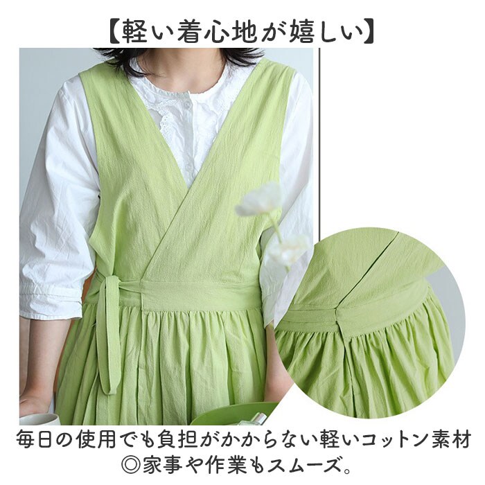 | 商品説明 | 【2WAYで着用できる】前後どちらでもOK!2WAYで着られるコットン素材のエプロンが新発売♪【気分でイメージチェンジ♪】スクエアネック・Vネックの2WAYで着られ、前後チェンジするだけで気軽にイメチェン完了。【汚れからしっかりカバー】前後どちらのデザインも胸元からひざ下まで覆うので汚れからしっかりカバー!【肩ひもがズレ落ちない】洋服みたいに着るデザインなので肩紐がズレ落ちないのも嬉しいポイント。【軽い着心地が嬉しい】毎日の使用でも負担がかからない軽いコットン素材◎家事や作業もスムーズ。【スリット入りで動きやすい】両サイドにはスリットが入っており、足さばきがしやすいのも◎【便利なポケット付き】左サイドにスマホやハンカチの収納に最適なポケット搭載。【シーンを選ばないシンプルさが魅力】無地のシンプル仕様なので、お家はもちろん、お仕事やイベントなど、いろんなシーンにマッチ |