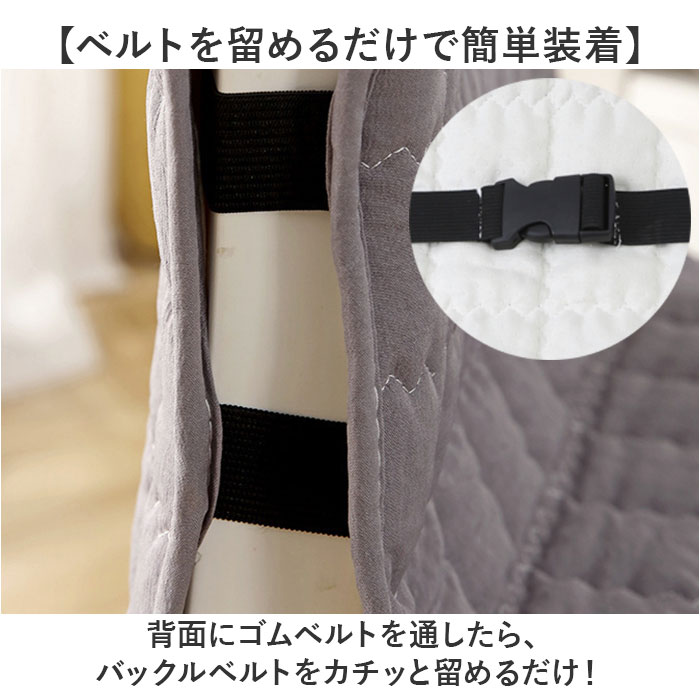 | 商品説明 | 【椅子をリニューアル!】サッと掛けて取り付け簡単!「チェアカバー 椅子カバー」が登場。【古くなった椅子にも◎】座面だけでなく背もたれまでカバーするので、汚れて古くなってしまったチェアもきれいに変身♪【サラッとした肌触り】程よくクッション性があり、座り心地の良いキルティング生地を採用。オールシーズン使用可能。【ベルトを留めるだけで簡単装着】背面にゴムベルトを通したら、バックルベルトをカチッと留めるだけ!【ストレスフリーな座り心地】裏面には滑り止め加工を施しているので、使用中もズレにくく安心◎【選べるサイズ】お使いの椅子の幅に合わせて選べる2サイズ展開。【お手入れも簡単】汚れが気になったら手洗いできるので、お手入れラクラク。【シンプルなデザイン&カラー】インテリアに馴染むシンプルなデザインと落ち着きのあるカラーのバリエーション。 |