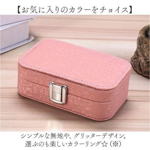 | 商品説明 | 【すっきりまとめて持ち運び♪】旅行などでも大切に保管できる♪コンパクトな「アクセサリーケース」が新登場。【大人女子にぴったりな上品さ】柔らかな手触りのPU素材を使い、落ち着きのある雰囲気に。年代問わず使いやすさ抜群。【開閉スムーズ!こぼれ落ちもガード】開口部には簡単に開け閉めできるパーツを。カチッと閉じれば、中身が飛び出す心配も不要◎【サッと取り出せるボックス型ケース】フタを開けると、中身が一目瞭然。アクセサリーをすぐ手に取れて、身支度がスマート♪【お気に入りアイテムを1つに収納】・4つのリングスロットとフリースペース。フタ裏にはネックレスやブレスレット類を4本収納。【長さのあるチェーンも絡まず安心】フタ裏フックの下には、ギャザーポケット付き。チェーンの絡まりを防げて便利。【大切なアイテムをしっかり保護】柔らかな素材の内張り仕様。大切なアクセサリーを傷や衝撃からガード◎【バッグに忍ばせておけるミニサイズ】手のひらに乗るくらいのサイズ感。旅行や出張、お仕事やお出かけの際にも、バッグにIN!【お気に入りのカラーをチョイス】シンプルな無地や、グリッターデザイン。選ぶのも楽しいカラーリング☆(※)グリッターデザインは、光沢のない質感です。 |