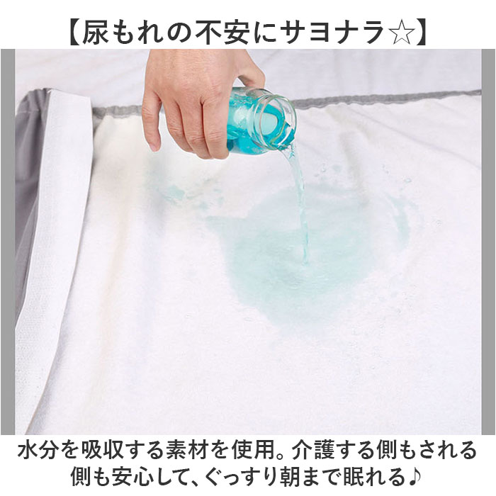 | 商品説明 | 【安心してぐっすり就寝♪】しっかり吸水生地で漏れをブロック!嬉しいスカートタイプの「介護 防水スカート」が登場。【尿もれの不安にサヨナラ☆】水分を吸収する素材を使用。介護する側もされる側も安心して、ぐっすり朝まで眠れる♪【面ファスナーでおむつ替えもOK】前開きタイプの面ファスナーを搭載。寝たままの姿勢でおむつ替えができる、嬉しい仕様。【スカートタイプだから360度カバー】寝返りをしても安心の、360度カバーできるスカートタイプ!締め付け感も少なくストレスフリー【調節できるウエストゴム】ウエストゴムは、ボタンでサイズ調節ができる作り。身体に合わせてフィット感をUP!【類似商品を多数取り扱い中!】他ページにて、類似商品を販売中!お探しのおねしょズボンがきっと見つかる。 |