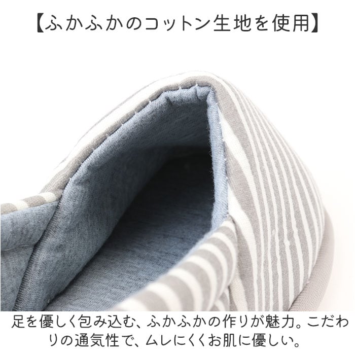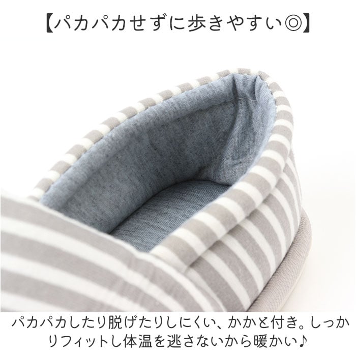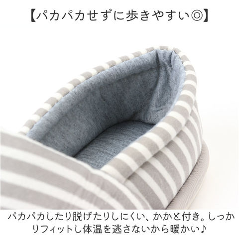 | 商品説明 | 【イイ事だらけのかかと付きタイプ◎】機能性と可愛さを両立した、万能アイテム!「ルームシューズ スリッパ かかと付」が登場。【パカパカせずに歩きやすい◎】パカパカしたり脱げたりしにくい、かかと付き。しっかりフィットし体温を逃さないから暖かい♪【ふかふかのコットン生地を使用】足を優しく包み込む、ふかふかの作りが魅力。こだわりの通気性で、ムレにくくお肌に優しい。【フローリングも安心の滑り止め】滑り止めを加工した足裏は、1cmとしっかり厚めの仕様。安定するからフローリングも歩きやすい【足先を冷やさず女性に優しい☆】床の冷えをブロックするアウトソール。靴みたいなしっかりした作りで身体を冷やさない。【みんな大好きボーダーデザイン♪】お家時間も可愛く過ごしたい方へ。シンプルだけど可愛らしい、人気のボーダー柄を採用☆【お仕事やイベントにもオススメ】軽く持ち運びがしやすいので、介護や看護職などの立ち仕事や、授業参観などのイベントにも! |