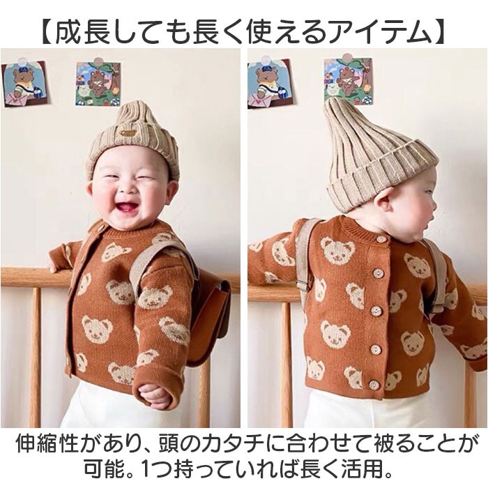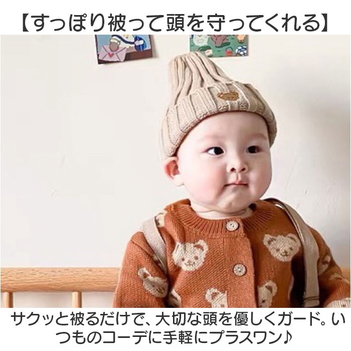 | 商品説明 | 【寒い季節もおしゃれに防寒対策】ふわりと頭を包み込む◎外遊びやお出かけなど、デイリーに活躍する「ベビー用ニット帽」。【思わず写真に収めたくなる可愛さ】フロントに配置された、クマさんの刺繍がワンポイント!ちょこんと被る姿にほっこり♪【お肌に優しくストレスフリー】素肌に触れてもチクチクせずデリケート肌のお子さまも安心。締め付けもなく心地よくフィット。【冷えを防いでふんわりあったか♪】柔らかく程よいボリュームで弾力性に優れた素材。あたたかい空気を閉じ込めて外に逃しにくい◎【すっぽり被って頭を守ってくれる】サクッと被るだけで、大切な頭を優しくガード。いつものコーデに手軽にプラスワン♪【成長しても長く使えるアイテム】伸縮性があり、頭のカタチに合わせて被ることが可能。1つ持っていれば長く活用。【アクセントになるカラーリング】男の子も女の子も選びやすい、可愛らしいカラーをラインナップ!兄弟・姉妹で色違い揃えも☆ |