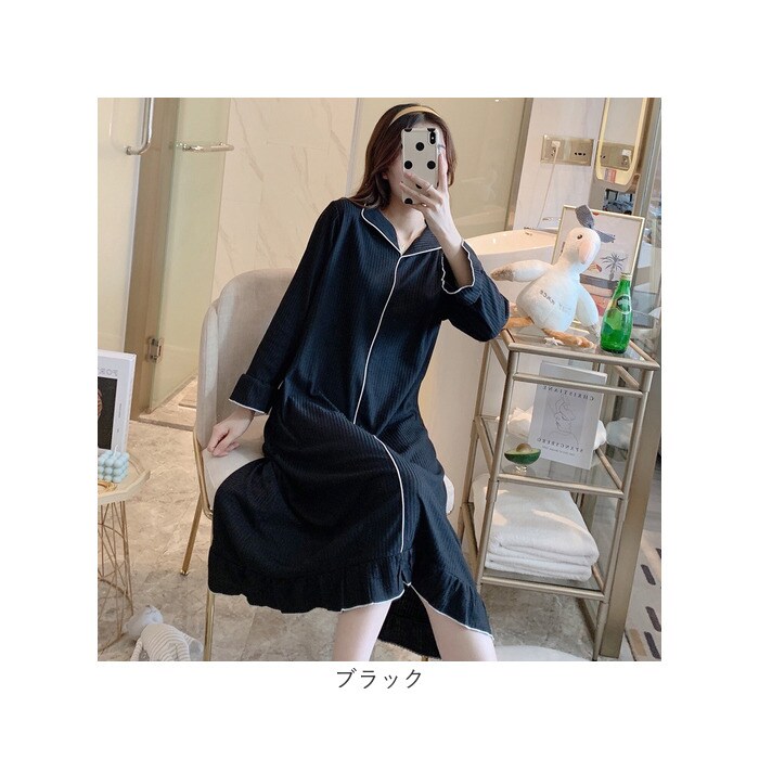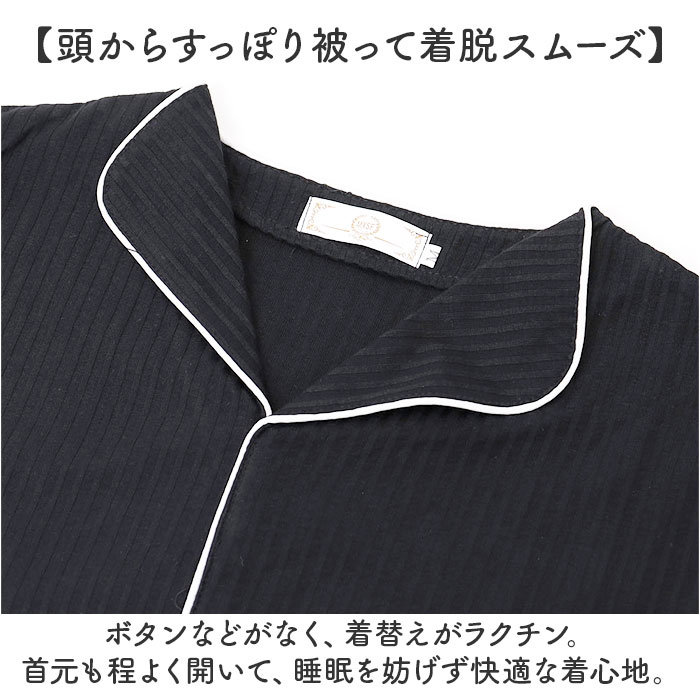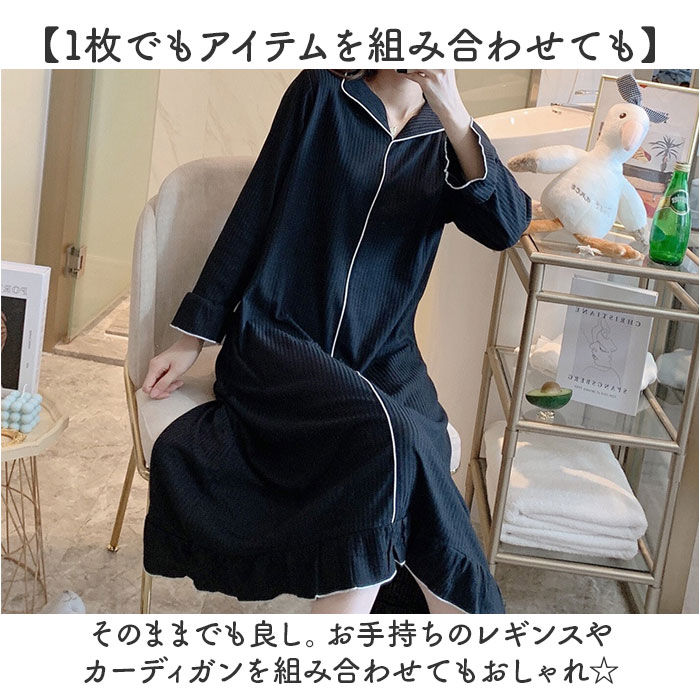 レディース ルームウェア パジャマ ワンピース 【ブラック】【M】