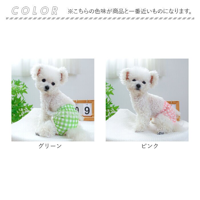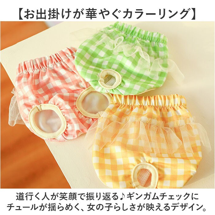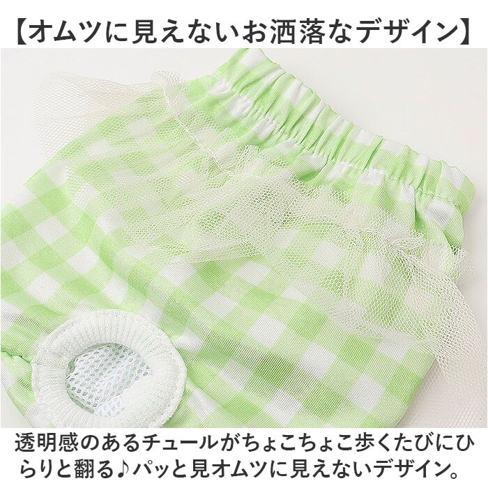 | 商品説明 | 【愛犬とのお出掛けや介護に大活躍】おしゃまなワンちゃんのお出掛けを応援♪お洋服感覚で着られる「ドッグ用マナーパンツ(女の子用)」【オムツに見えないお洒落なデザイン】透明感のあるチュールがちょこちょこ歩くたびにひらりと翻る♪パッと見オムツに見えないデザイン。【サラサラメッシュでいつでも快適】クロッチ部分は通気性に優れ肌触りのよいメッシュ生地仕上げ。ムレが気になる季節もサラッと快適。【吸水パッドが装着可能】市販の吸水パッドをクロッチ部のメッシュポケットに入れておけば、急なおしっこにもしっかり対応!【活発なワンちゃんでも大丈夫】ぐーんと伸びるゴムギャザーがお腹周りにフィット!活発なワンちゃんでも脱げにくくて安心。【着用時のストレスフリー】尻尾が出せるようにお尻部分が丸く開いたデザインなので、窮屈感がなく着用時のストレスフリー♪【ご家庭で手軽にお洗濯OK♪】生地はサラッと肌触りのよいポリエステル素材。ご家庭でお洗濯ができるのも嬉しいポイント。【ぴったりサイズが見つかる!】XSサイズ~Lサイズまでの4サイズ展開で、愛犬の身体に合わせてピッタリサイズがチョイス可能!※超小型犬~小型のワンちゃんに最適なサイズ感です。胴回りのサイズは、ゴムギャザーでサイズ表の数値よりもある程度伸縮します。【お出掛けが華やぐカラーリング】道行く人が笑顔で振り返る♪ギンガムチェックにチュールが揺らめく、女の子らしさが映えるデザイン。 |