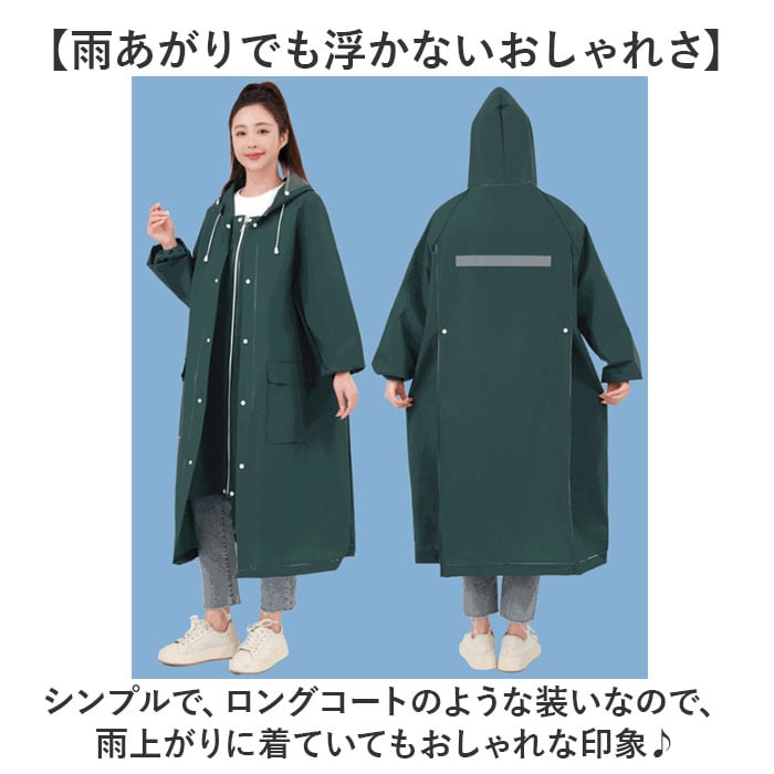 | 商品説明 | 【荷物や足元を濡らさない設計◎】タウンユースにぴったりなおしゃれさ!「レインコート レインポンチョ 男女兼用」が登場。【豪雨でも安心の多層防水設計】水を侵入させない防水レベルの生地に、ファスナー×ボタンの二重構造で、染み込みを防ぐ!【顔や前髪を守る、レインバイザー】あごまでガードしてくれる、大きめのバイザーを搭載。メイク落ちを気にせずOK、視界も良好◎【ワイドに広がる背面設計】リュックや荷物を背負ったままで着用できる!荷物も濡らさない、通勤通学に嬉しい作り。【足元までカバーする長めの丈】歩いている時はもちろん、自転車やバイクに乗った姿勢でも濡れにくい長めの丈感がポイント。【三角マチで動きやすく濡れにくい】ボタンを外すと現れるマチ部分。自転車の姿勢になっても雨が当たりにくい!【雨あがりでも浮かないおしゃれさ】シンプルで、ロングコートのような装いなので、雨上がりに着ていてもおしゃれな印象♪【悪天の日も暗い道もOK】背中には大きめのリフレクターを配置。夜道や事故の多い夕方の時間でも安心◎【家族みんなで共有やおそろいで】ユニセックスで使えるアイテムなので、家族で共有するのもオススメ。サイズも選べるのがGOOD☆ |