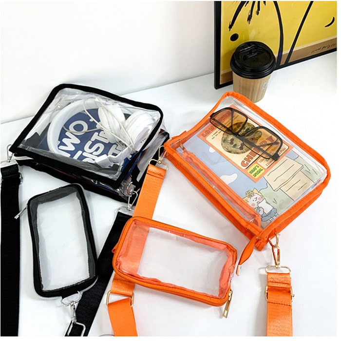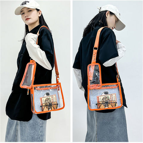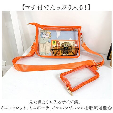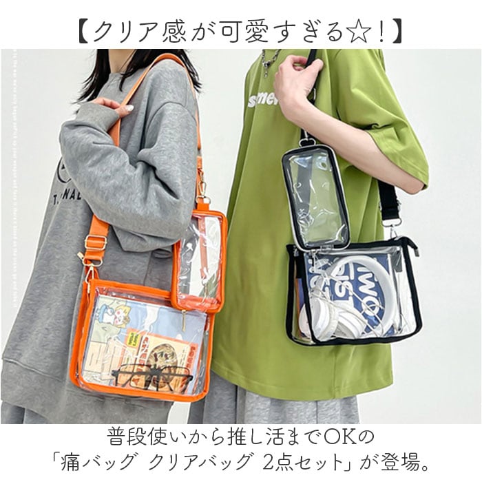 痛バッグ クリアバッグ ショルダー 推し活 2点セット【オレンジ】