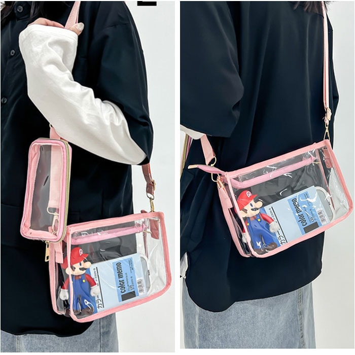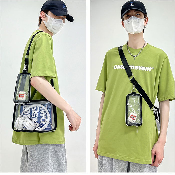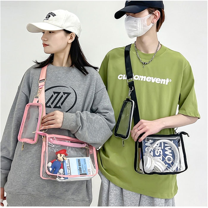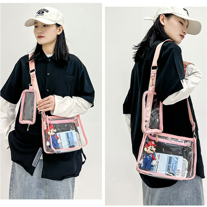 | 商品説明 | 【クリア感が可愛すぎる☆!】普段使いから推し活までOKの「痛バッグ クリアバッグ 2点セット」が登場。【お好みにデコレーションできる☆】ぬいぐるみやアクスタ、写真などを自由にデコして、世界にひとつだけの推し活バッグが完成!【ミニポーチもセットに!】カラビナつきのポーチを、ストラップにぶら下げるのもオススメ☆ほどよいアクセントに!【ハンズフリーになれるショルダー】イベントやライブなどにぴったりのショルダータイプ。両手があくのが嬉しいポイント。【もちろん普段使いにも♪】おしゃれアイテムとしても大注目のクリアデザイン☆ユニセックスで使えるカラーリング◎【撥水生地で小雨にも対応】ビニール素材なので、突然の雨でも慌てなくてOK。汚れに強い!※完全防水ではありません。【マチ付でたっぷり入る!】見た目よりも入るサイズ感。ミニウォレット、ミニポーチ、イヤホンやスマホを収納可能◎ |