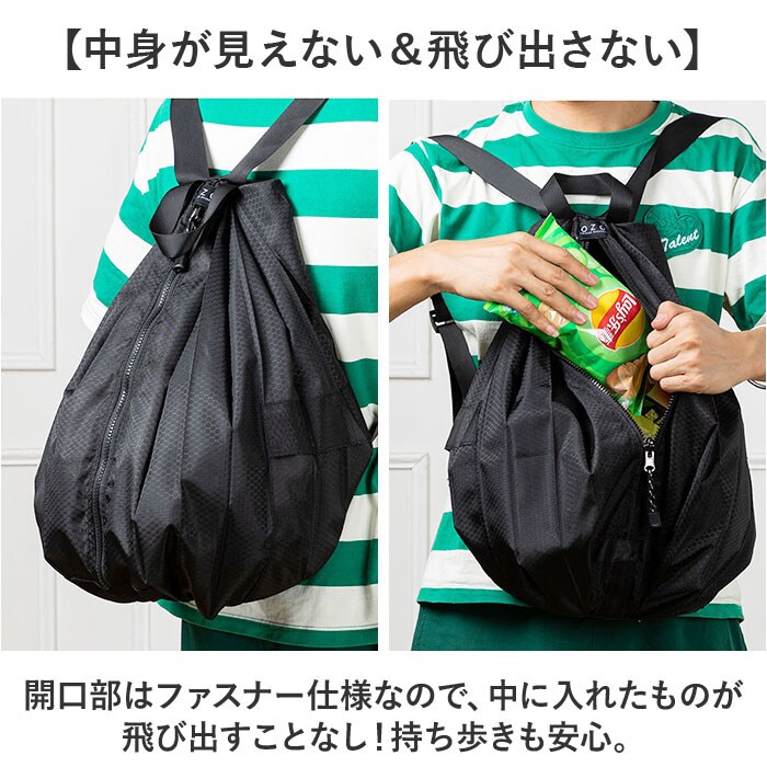 | 商品説明 | 【毎日持ち歩ける!コンパクトサイズ☆】撥水機能&たっぷり入る大容量で、使いやすい!「折りたたみエコバッグ リュック」が登場。【ありそうでなかったリュックタイプ】折りたたみのエコバッグをリュックタイプに!両手が自由に使える、リュックタイプが便利♪【見た目よりも入る大容量サイズ!】見た目よりもたっぷり入る大容量設計!底マチがあるので、まとめ買いをした日でも大丈夫◎【中身が見えない&飛び出さない】開口部はファスナー仕様なので、中に入れたものが飛び出すことなし!持ち歩きも安心。【撥水機能でお買い物に最適◎】内側と外側は、水濡れに強い撥水加工生地。冷凍冷蔵品を入れてもOK。汚れたら拭き取りOK。【クルクルまるめてコンパクトに!】使わない時はクルクルまるめて付属のゴムバンドで留めるだけ◎毎日持ち運べる、コンパクトさ!【重たい荷物でも大丈夫!】クロスステッチで強度を上げているので、重たい荷物を入れても安心!丈夫だから長く使える。【レジャーやアウトドアでも大活躍】エコバッグとしてだけでなく、メインバッグとしての使用も◎汚れに強いからガシガシ使える。【ポケット仕様】サイド:オープンポケット×2 |