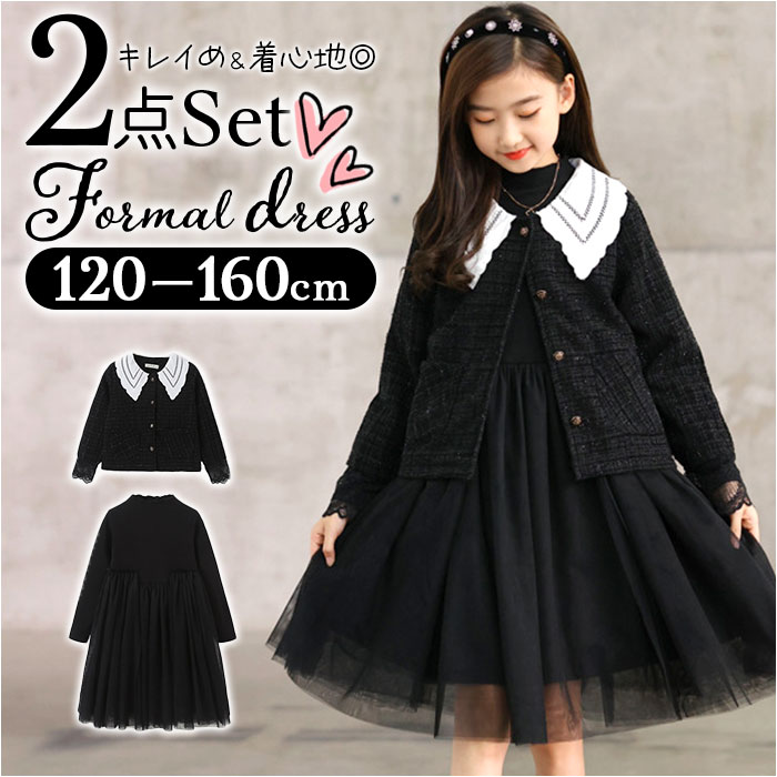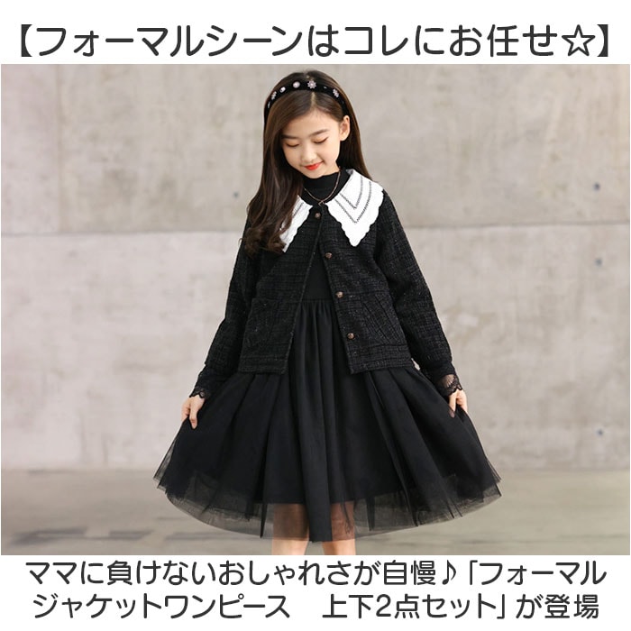 女の子 フォーマル ジャケットワンピース 上下2点セット【ブラック】【140cm】