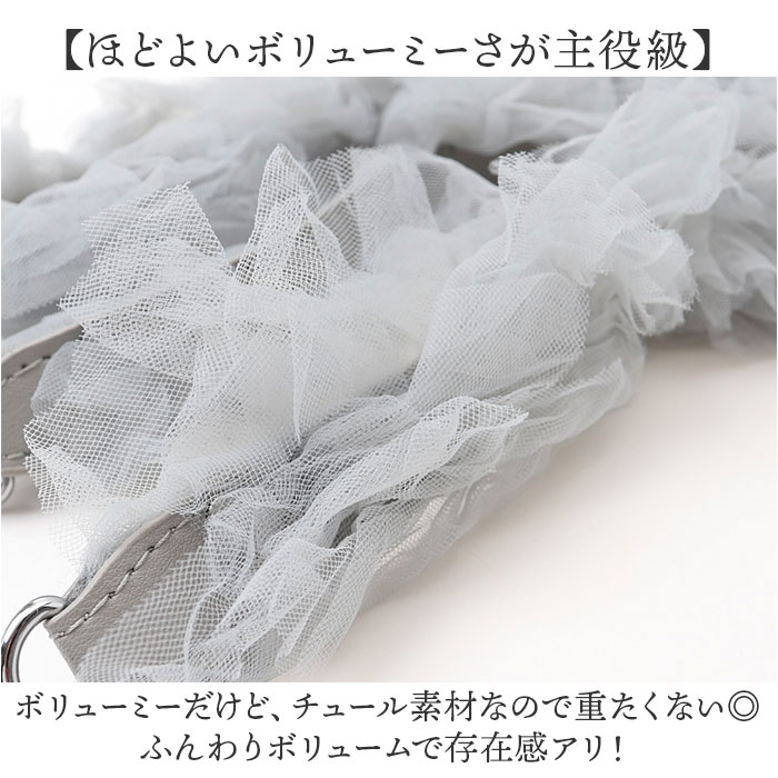 スマホショルダー ストラップ フリル チュール【オフホワイト】