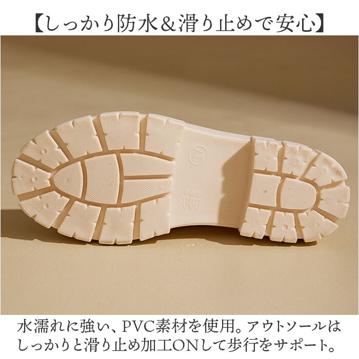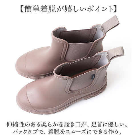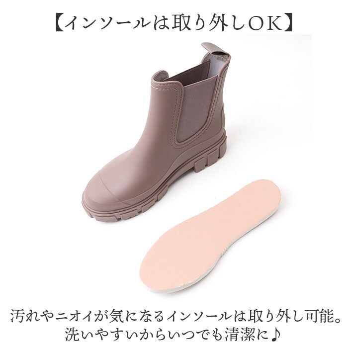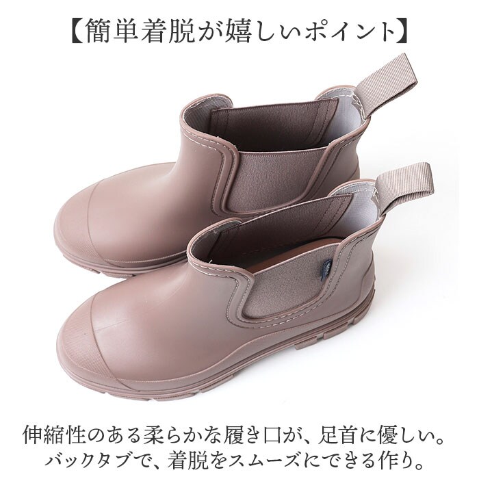 | 商品説明 | 【雨上がりも履けるおしゃれさ☆】雨の日も雪の日も大活躍の1足!「レインブーツ 」が登場。【サッと履けるショート丈がポイント】長靴よりも気軽に履けて、着脱も楽々なショート丈。スリッポンみたいな履き心地が魅力。【長靴っぽくないおしゃれさがGOOD】雨上がりや帰りの雨対策に履いて行ける、ブーツみたいなデザイン♪もうお天気に左右されない◎【しっかり防水&滑り止めで安心】水濡れに強い、PVC素材を使用。アウトソールはしっかりと滑り止め加工ONして歩行をサポート。【簡単着脱が嬉しいポイント】伸縮性のある柔らかな履き口が、足首に優しい。バックタブで、着脱をスムーズにできる作り。【クッションインソールで歩きやすい】厚めのインソールが足裏にフィット。たくさん歩く日も快適で、疲れにくくラクラク!【インソールは取り外しOK】汚れやニオイが気になるインソールは取り外し可能。洗いやすいからいつでも清潔に♪【いろいろなシーンで使える】雨の日はもちろん、ガーデニングなどの水仕事、レジャーやアウトドアなど、幅広く大活躍! |