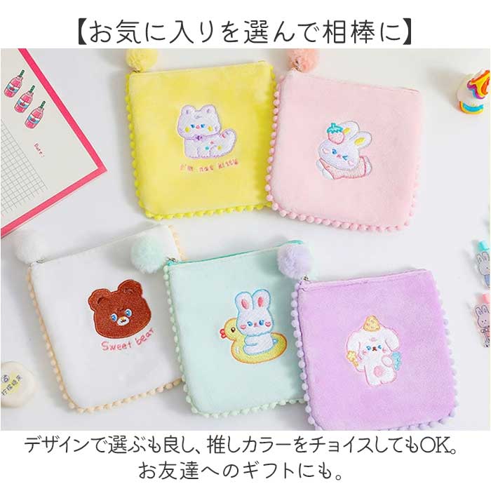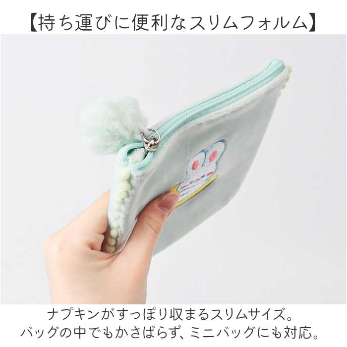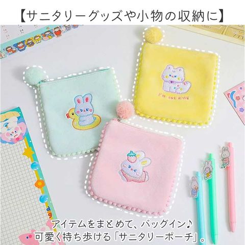 | 商品説明 | 【サニタリーグッズや小物の収納に】アイテムをまとめて、バッグイン♪可愛く持ち歩ける「サニタリーポーチ」。【ポップでキュートなデザインが魅力】柔らかな起毛素材に、刺繍ワッペンやポンポンがアクセント♪中身を隠したい時にもぴったり。【持ち運びに便利なスリムフォルム】ナプキンがすっぽり収まるスリムサイズ。バッグの中でもかさばらず、ミニバッグにも対応。【開閉スムーズ、安心のファスナー式】ガバっと開いて出し入れラクラク。ファスナーを閉じれば、中身の飛び出しもガード。【コスメやエチケットアイテムにも】リップや目薬、絆創膏などの小物入れにも重宝。使い方は自分次第☆【お気に入りを選んで相棒に】デザインで選ぶも良し、推しカラーをチョイスしてもOK。お友達へのギフトにも。 |