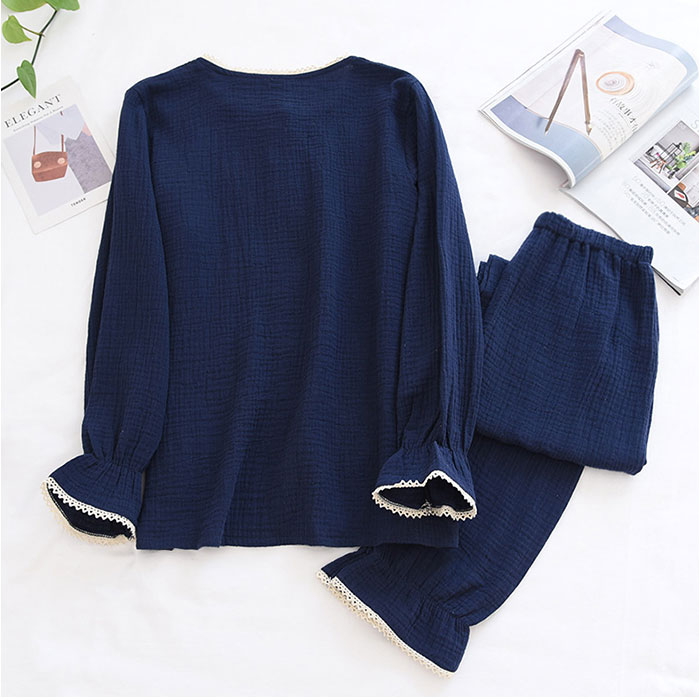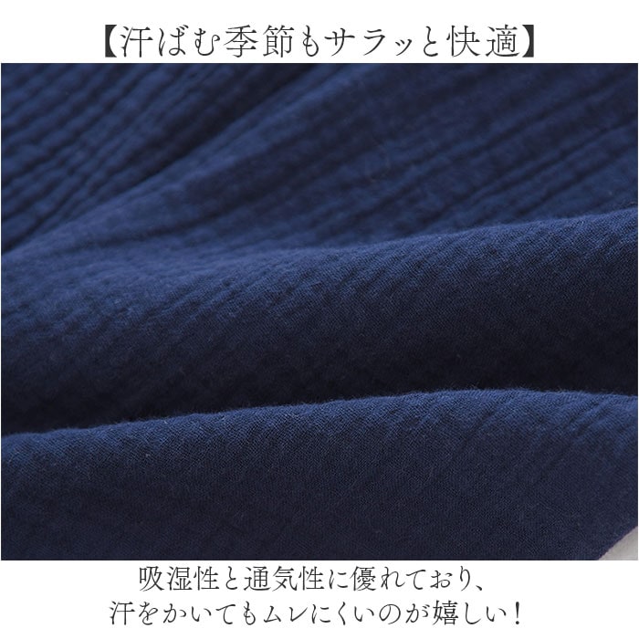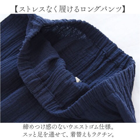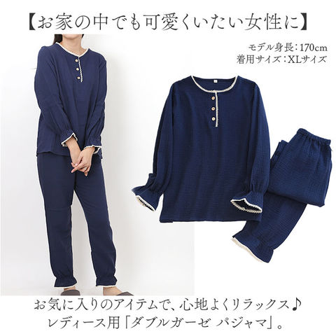 パジャマ レディース 綿 ダブルガーゼ ルームウェア【ネイビー】【L】