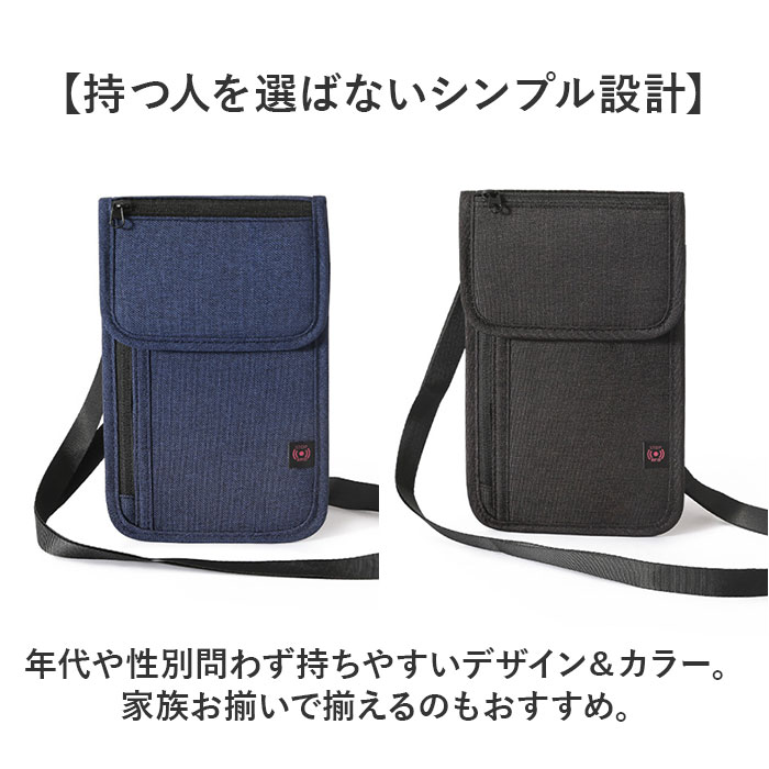 パスポートケース スキミング防止 セキュリティポーチ トラベル【ブラック】