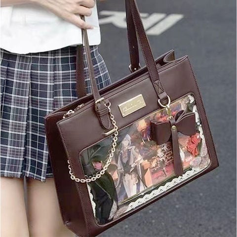 痛バッグ トート ショルダー 推し活 2way【ブラウン】