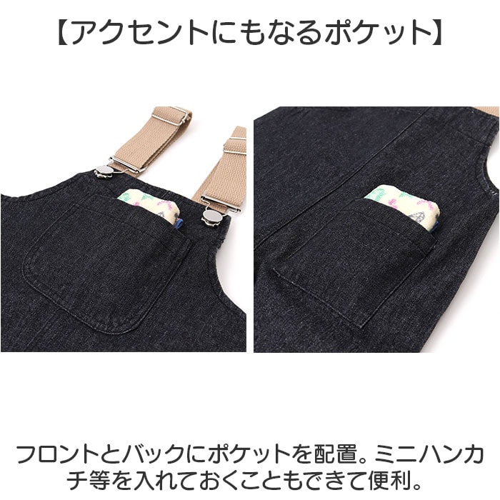 オーバーオール ベビー デニム【ブラック】【73cm】
