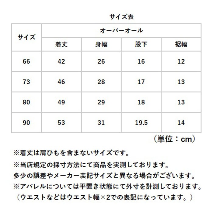 | サイズ | [ベビー] ・66cm ・73cm ・80cm ・90cm ※サイズについて詳細は、商品画像の中にあるサイズ表をご覧くださいませ。 |