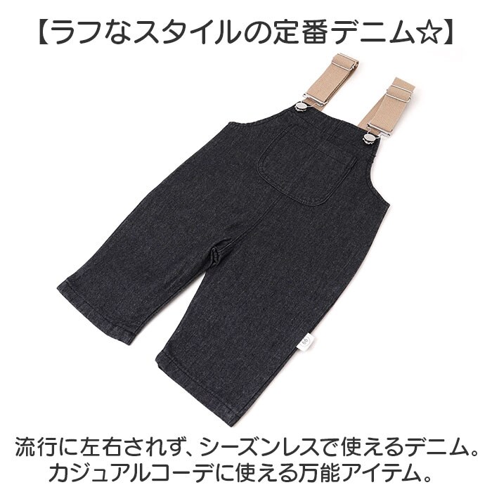 | 商品説明 | 【持っていればヘビロテ間違いなし】着心地ばっちりで、デイリーに活躍。「ベビー用デニムオーバーオール」。【ラフなスタイルの定番デニム☆】流行に左右されず、シーズンレスで使えるデニム。カジュアルコーデに使える万能アイテム。【動きやすさ抜群のオーバーオール】柔らかで程よい厚みの素材を使用。元気に動き回るお子さまの動きを妨げず、ノンストレス。【長さ調節できて着替えもラクチン】肩ベルトは身長に合わせて調節可能。金具に装着するだけで、着替えも手間取らない◎【お好みでアレンジもおすすめ】そのままではもちろん。裾をロールアップすれば、大人顔負けの着こなしに☆【アクセントにもなるポケット】フロントとバックにポケットを配置。ミニハンカチ等を入れておくこともできて便利。【ご家族でリンクコーデもおすすめ】パパ・ママもお手持ちのデニムアイテムを着用!仲良くお揃いコーデが叶う☆ |