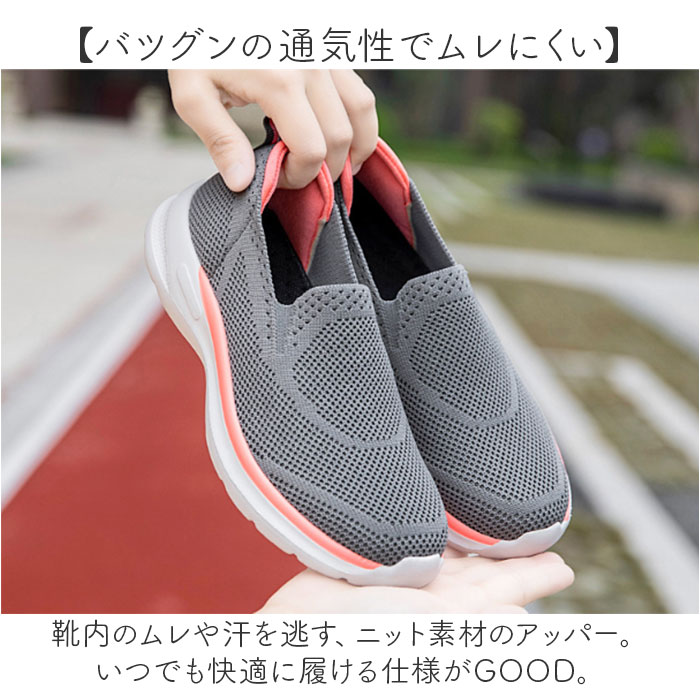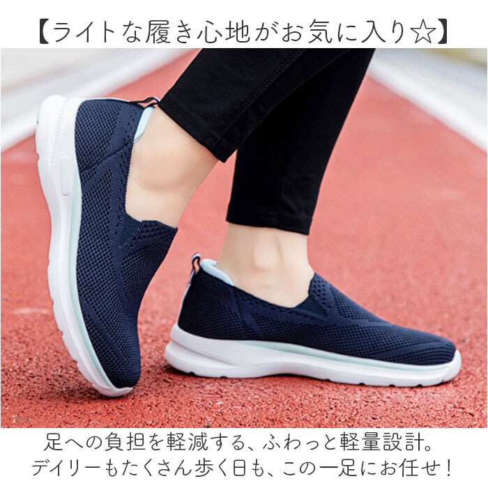| 商品説明 | 【どこまでも歩ける!軽い履き心地】ストレスフリーの靴をお探しの方へ♪「スリッポン ウォーキングシューズ」が登場。【ライトな履き心地がお気に入り☆】足への負担を軽減する、ふわっと軽量設計。デイリーもたくさん歩く日も、この一足にお任せ!【バツグンの通気性でムレにくい】靴内のムレや汗を逃す、ニット素材のアッパー。いつでも快適に履ける仕様がGOOD。【立体構造のインソールでFIT感UP】足裏にぴったりFITする、もっちり立体インソールを採用。しっかり支えて歩行が安定♪【ストレスフリーのスリッポン】靴ひもの結びなおしが不要の、スリッポンタイプ。グンと伸びる履き口で着脱ラクチン!【毎日履けるシンプルデザイン】シーンや年齢を問わず履ける、シンプルさが魅力。毎日のウォーキングやお出かけに◎ |