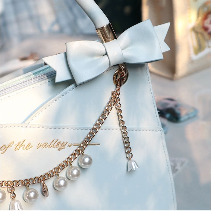 痛バッグ 小さめ パール リボン ショルダー 推し活【ホワイト】