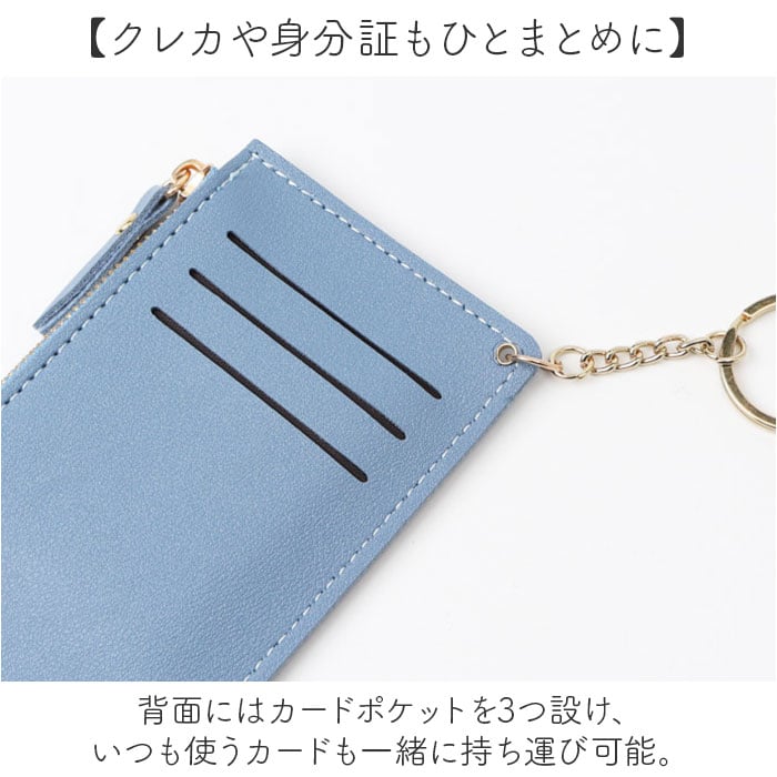 | 商品説明 | 【お出かけに嬉しい機能沢山】可愛いカラーと機能性が嬉しい薄型パスケースが新発売。【シンプルな窓付きポケット】パスケース前面には、交通系ICカードや定期券を見やすく収納できるクリア窓付きポケット。【クレカや身分証もひとまとめに】背面にはカードポケットを3つ設け、いつも使うカードも一緒に持ち運び可能。【ちょっとしたミニ財布に】少量の小銭が入るファスナーポケットを中央に配置。薬などを入れてポーチ代わりにも♪【鍵も付けれるキーリング付き】迷子になりがちな鍵も一緒に付けられるキーリング付き。パスケース1つでお出かけができる◎【可愛いカラー展開】トレンド感のあるニュアンスカラー中心のラインナップ♪シンプルながらこなれ感もアリ。【ポケット仕様】フロント・・・クリア窓付きカードポケット中央・・・ファスナーポケット×1背面・・・カードポケット×3 |