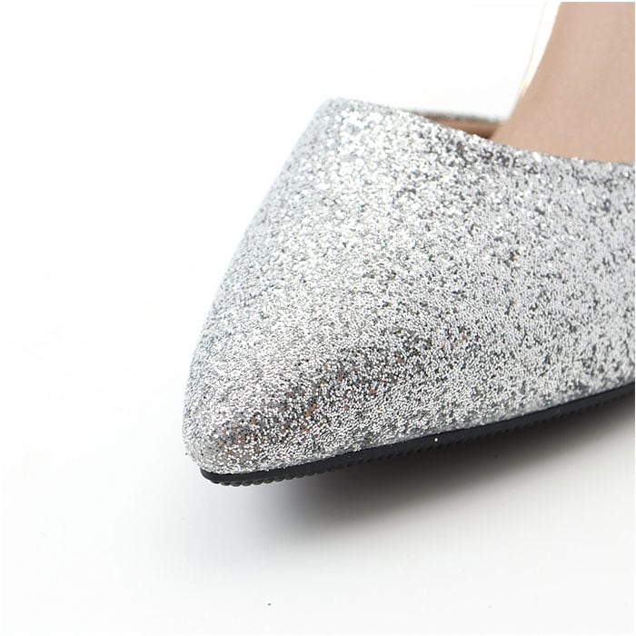 アンクルストラップ 結婚式 パンプス キラキラ ラメ 美脚【シルバー】【38(24cm)】