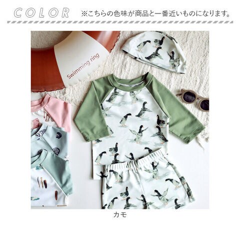ベビー キッズ 水着 セパレート 帽子付き UVカット【カモ】【120cm】