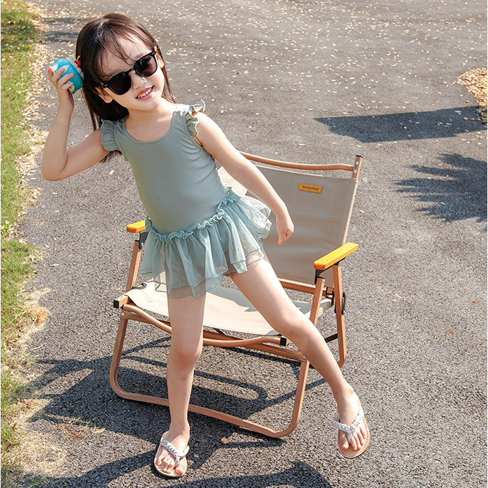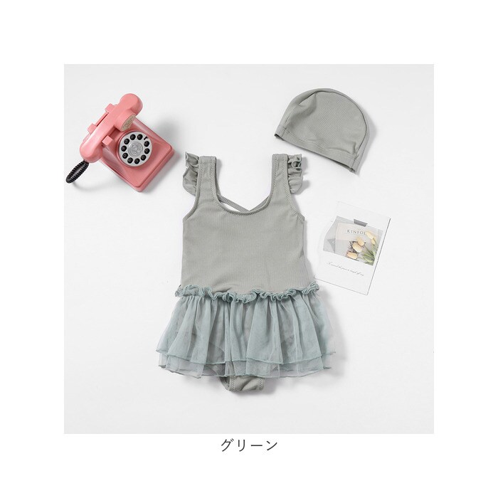 キッズ 水着 女の子 ワンピース レース【グリーン】【120cm】