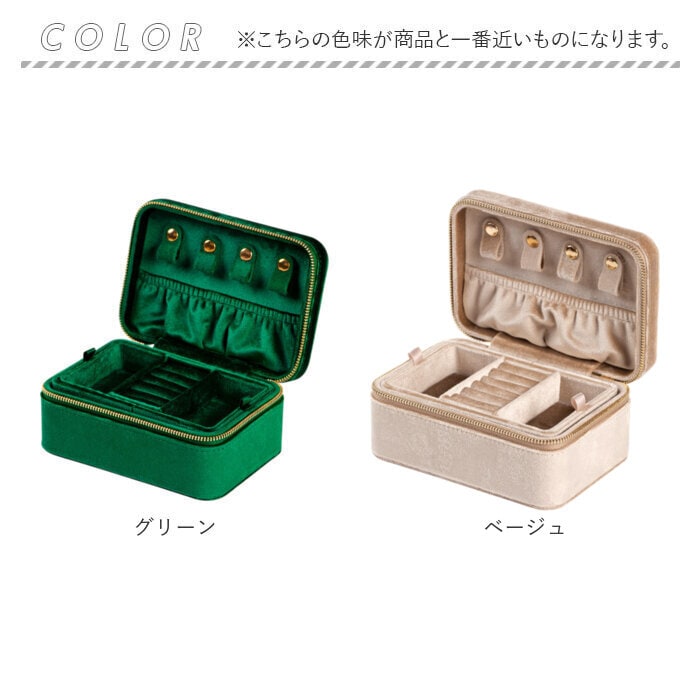 ベロアアクセサリーケース ジュエリーボックス 二段式 持ち運び【ベージュ】