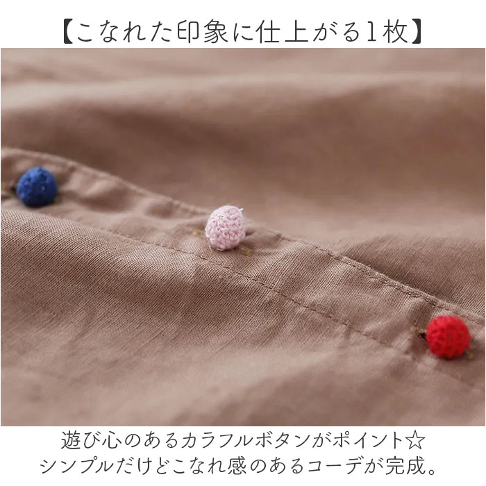 | 商品説明 | 【大人ナチュラルな着こなしに♪】表情豊かなリネン風生地が魅力の「シャツ レディース おしゃれブラウス」が登場。【こなれた印象に仕上がる1枚】遊び心のあるカラフルボタンがポイント☆シンプルだけどこなれ感のあるコーデが完成。【着心地にこだわったリネン風生地】軽くてサラッと気持ちいい、リネン風生地が嬉しい!コットンと麻のナチュラルな風合いがGOOD◎【優しい丸襟で上品さUP】カジュアルに着られるけど、上品さと女性らしさのある丸襟デザインを採用。大人にぴったり!【着こなし方に合わせてチョイス☆】半袖長袖の2タイプをご用意。夏にサラッと着たい、春秋のロングシーズン着たい、お好みでOK♪ |