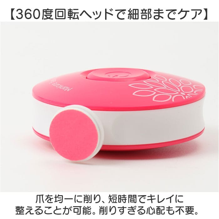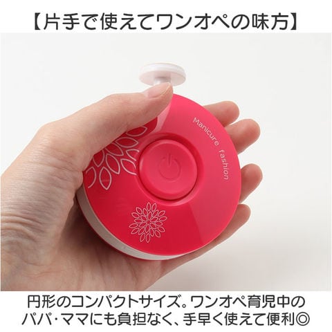 | 商品説明 | 【赤ちゃんの爪切り悩みを解消】赤ちゃんの爪を安全に整えることができる◎「ベビー ネイルマシン」。【触れても痛くない安心設計】爪と肌に優しいアタッチ面。傷つけることなく整えて、引っかき傷も軽減。【寝ている間も起こさない静音タイプ】電動だけど音が気になりにくい!赤ちゃんが寝ている間でも、起こさずラクラク。【360度回転ヘッドで細部までケア】爪を均一に削り、短時間でキレイに整えることが可能。削りすぎる心配も不要。【使い分けできる6種アタッチメント】赤ちゃんに使える柔らか面、大人用の硬い面まで6種がセットに。家族で長く愛用♪(※)濃いピンク:6ヵ月まで/紫:6~12ヵ月/グリーン:12ヵ月以上/黄色:成人(細)/ピンク:成人(粗)/白:艶出し用【片手で使えてワンオペの味方】円形のコンパクトサイズ。ワンオペ育児中のパパ・ママにも負担なく、手早く使えて便利◎【ワンタッチで簡単い操作可能】中央の電源ボタンを押してスタート、もう一度押せばオフ状態に。どなたでもスムーズに対応。【持ち運びもできる電池式アイテム】別売りの単4電池1本使用。軽量で収納スペースにも困らず旅行や帰省時もすっきりバッグイン。【気分も上がる可愛らしいデザイン】キュートな花柄で、ケアの時間も楽しめる☆お気に入りをチョイス。 |