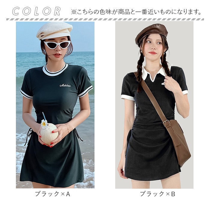 水着 ワンピース レディース 水陸両用 2点セット【ブラック×B】【L】