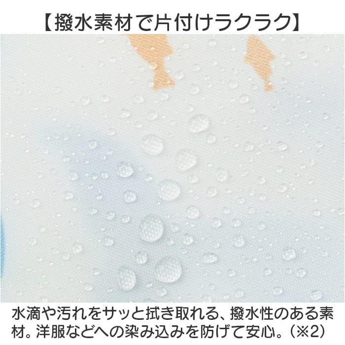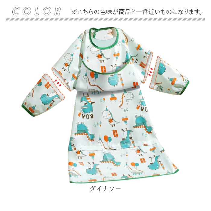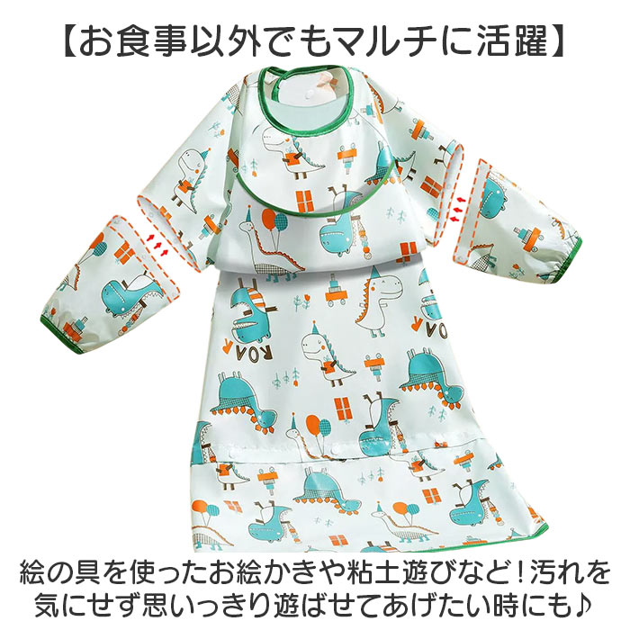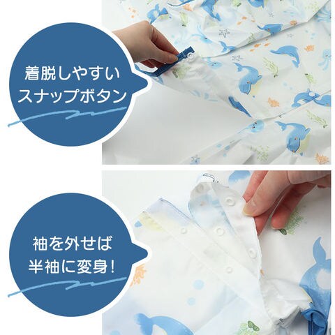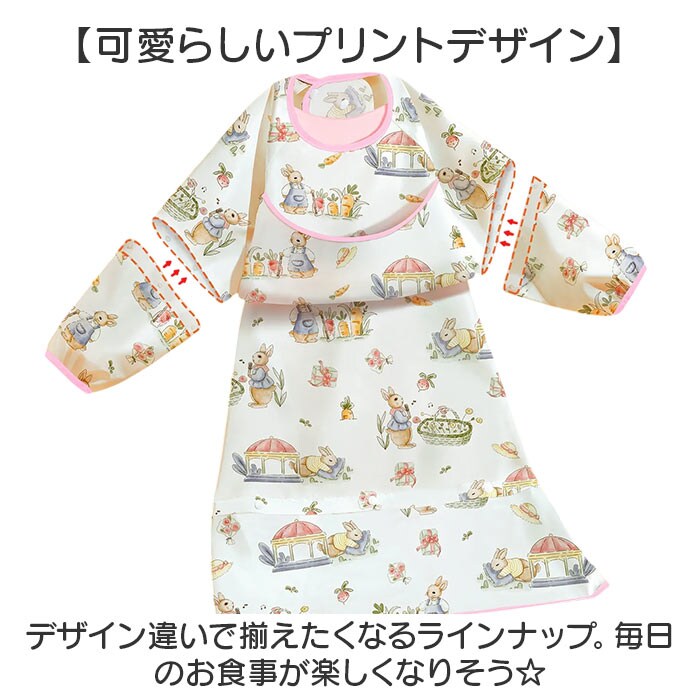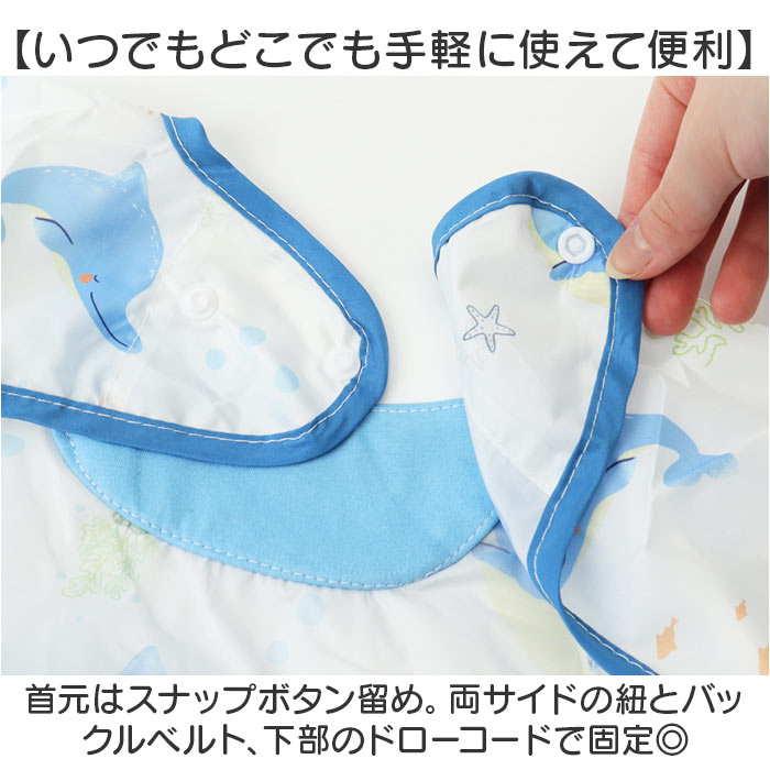 商品説明【食べこぼしの汚れからしっかり守る】キッズのお食事の必需品☆テーブルクロス一体型の「3way食事エプロン」。【エプロンとテーブルクロスが1つに】食べこぼしが多いテーブルとの間もしっかりカバー。片付けもスムーズで、ママも笑顔☆【シーンに合わせてスタイルチェンジ】エプロンとテーブルクロス一体、エプロンのみ、袖の付け外しも可能な3wayタイプ!(※1)すべてスナップボタンで着脱可能です。【食べこぼしをキャッチするポケット】フロントには大きなポケットを。つかみ食べや、自分でスプーンなどを使って食べたい時期にも!【いつでもどこでも手軽に使えて便利】首元はスナップボタン留め。両サイドの紐とバックルベルト、下部のドローコードで固定◎【撥水素材で片付けラクラク】水滴や汚れをサッと拭き取れる、撥水性のある素材。洋服などへの染み込みを防げて安心。(※2)防水仕様ではありません。【お出かけ時はコンパクトに持ち運び】折りたためて、かさばらずにバッグイン。旅行などにもおすすめ。【お食事以外でもマルチに活躍】絵の具を使ったお絵かきや粘土遊びなど!汚れを気にせず思いっきり遊ばせてあげたい時にも♪【可愛らしいプリントデザイン】デザイン違いで揃えたくなるラインナップ。毎日のお食事が楽しくなりそう☆