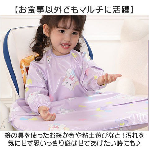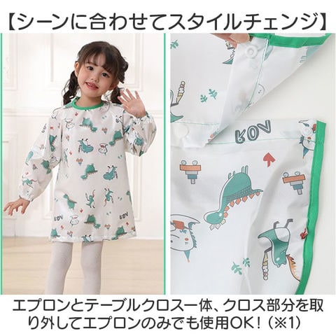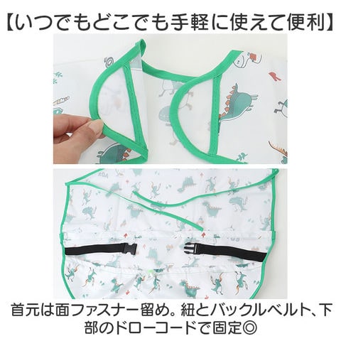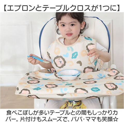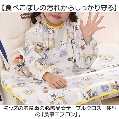 | 商品説明 | 【食べこぼしの汚れからしっかり守る】キッズのお食事の必需品☆テーブルクロス一体型の「食事エプロン」。【エプロンとテーブルクロスが1つに】食べこぼしが多いテーブルとの間もしっかりカバー。片付けもスムーズで、パパ・ママも笑顔☆【シーンに合わせてスタイルチェンジ】エプロンとテーブルクロス一体、クロス部分を取り外してエプロンのみでも使用OK!(※1)スナップボタンで着脱可能です。【いつでもどこでも手軽に使えて便利】首元は面ファスナー留め。紐とバックルベルト、下部のドローコードで固定◎【色んなタイプのチェアに使える】椅子とテーブルが一体となった、様々な種類のアイテムに取り付け可能。【撥水素材で片付けラクラク】水滴や汚れをサッと拭き取れる、撥水性のある素材。洋服などへの染み込みを防げて安心。(※2)防水仕様ではありません。【お好みで選べる2タイプ】袖なしと袖ありの2タイプをご用意。袖ありタイプは、スナップボタンで袖の取り外しも可能。【お出かけ時はコンパクトに持ち運び】折りたためて、かさばらずにバッグイン。旅行などにもおすすめ。【お食事以外でもマルチに活躍】絵の具を使ったお絵かきや粘土遊びなど!汚れを気にせず思いっきり遊ばせてあげたい時にも♪【可愛らしいプリントデザイン】デザイン違いで揃えたくなるラインナップ。毎日のお食事が楽しくなりそう☆ |