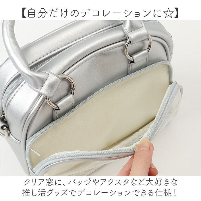 | 商品説明 | 【普段使いもできる推し活グッズ】普段使いも推し活もお任せ☆ミニマルに持てる痛バッグが新発売。【自分だけのデコレーションに☆】クリア窓に、バッジやアクスタなど大好きな推し活グッズでデコレーションできる仕様!【レザー調で普段使いもOK】レザー調の大人っぽいデザインが魅力。デコ窓を後にすれば普段使いもできる優れモノ。【マストなアイテムをIN】お財布やコスメポーチ、手帳などマストなアイテムが入るサイズ☆【ライブ等で活躍する2WAY】斜め掛けも可能なショルダーつき!イベントやライブで、ハンズフリーで動けるのが嬉しい♪※(※)2本付属【流行りの見せる収納にも】推しグッズの他、スマホやミニポーチなどを入れてトレンドな見せる収納にもオススメ♪【ポケット仕様】メイン収納・・・ファスナーポケット×1フロント・・・ファスナーポケット×1(クリア窓仕様) |