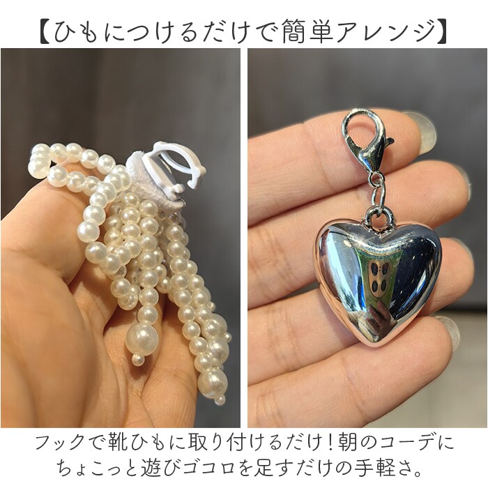 | 商品説明 | 【いつものスニーカーが大変身☆】スニーカーに付けるだけで気分UP!足元が一気に可愛くなるシューズチャームが登場。【ひもにつけるだけで簡単アレンジ】フックで靴ひもに取り付けるだけ!朝のコーデにちょこっと遊びゴコロを足すだけの手軽さ。【きらきらモチーフでときめきUP】パールビーズやリボン、ハートなど、おしゃれゴコロくすぐるきらめきモチーフが勢ぞろい。【毎日変えたくなるデザイン豊富】ガーリー系も大人かわいい系もそろってるから、日替わり気分で楽しめるバリエーション。【バッグやポーチにもぴったり!】靴以外にもバッグや小物にちょこんとつけて、自分だけのアレンジを楽しめる万能アクセ♪ |
