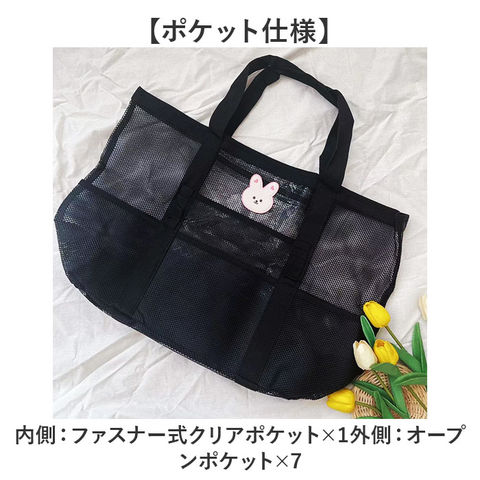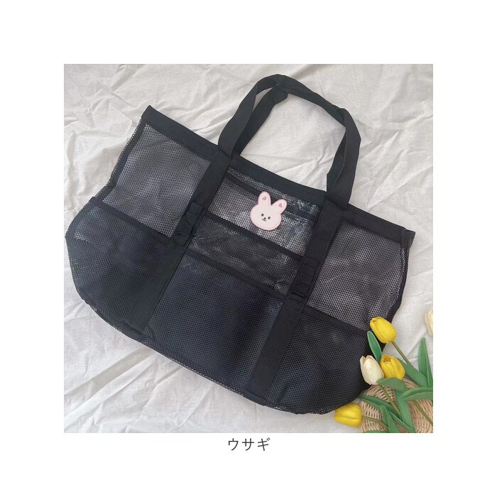 ビーチバッグ プールバッグ メッシュ 大容量 アニマル【リボンウサギ】