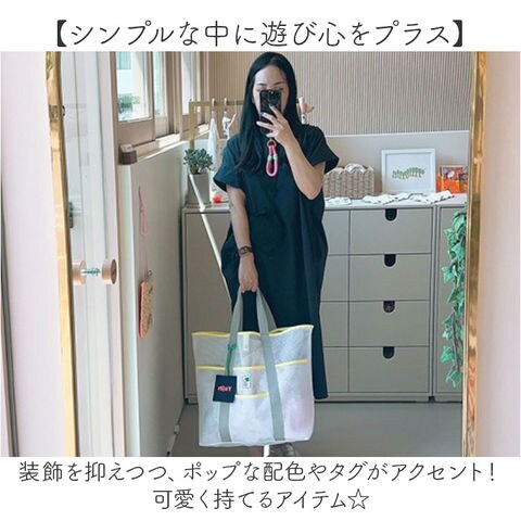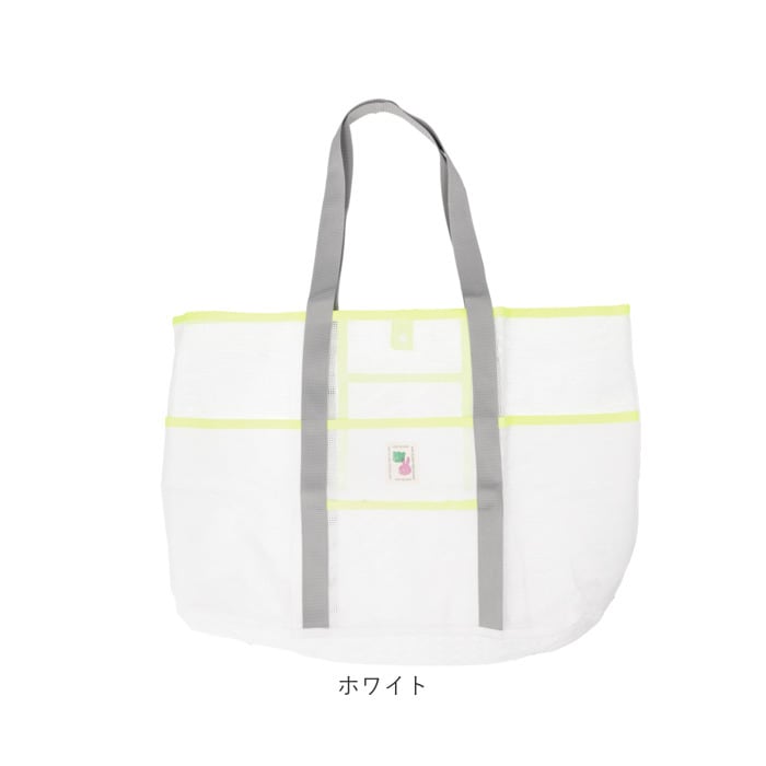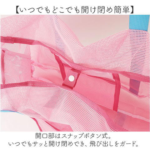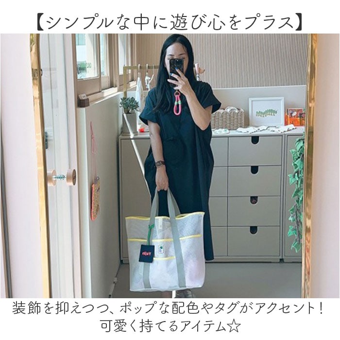 | 商品説明 | 【ビーチやプールなどで大活躍!】ちょこっと濡れても、サッと拭き取れて乾きも速い◎気軽に持ち出せる「ビーチバッグ」。【通気性が良く底に溜まらず快適】全体メッシュ仕上げ。通気性に優れ、底に砂や水滴が溜まらず使える♪【肩掛けできて移動がラクラク】サッと肩掛けできる長めのハンドル。両手を自由に使えて、荷物が重くなっても大丈夫。【いつでもどこでも開け閉め簡単】開口部はスナップボタン式。いつでもサッと開け閉めでき、飛び出しをガード。【ざっくりまとまり使い勝手抜群】タオルや水着などがすっぽりひとまとめ。家族分の荷物も収まるサイズ感。【サクッと取り出せて迷子知らず】すぐに取り出したい小物を収納できる、5つのポケット付き。バッグの中で探す手間が不要。【シンプルな中に遊び心をプラス】装飾を抑えつつ、ポップな配色やタグがアクセント!可愛く持てるアイテム☆【ポケット仕様】内側:オープンポケット×1前面:オープンポケット×4 |