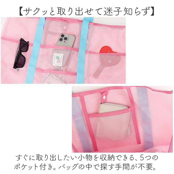ビーチバッグ プールバッグ メッシュ 大容量 おしゃれ【ピンク】